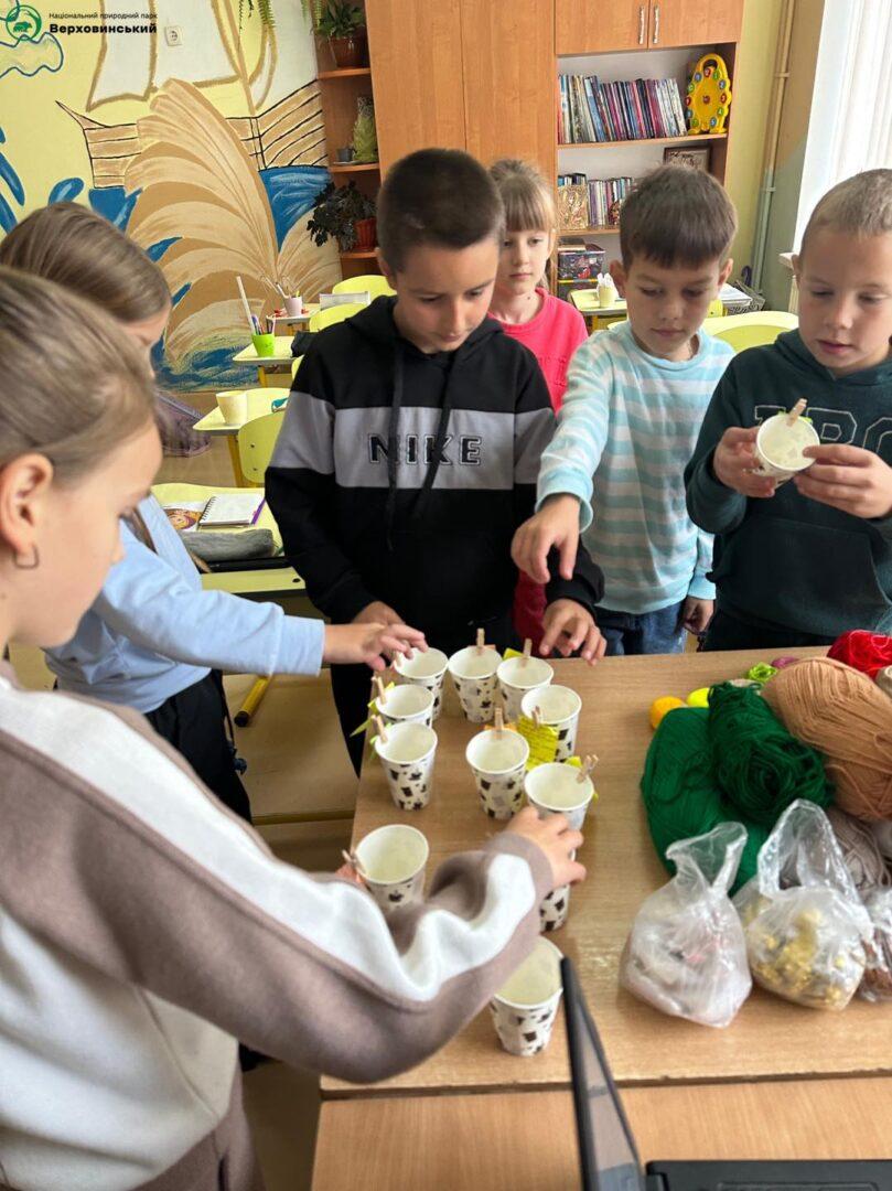 А коли діти заглянули всередину стаканчиків та пластикових бутилок— знайшли матеріали для творчості.